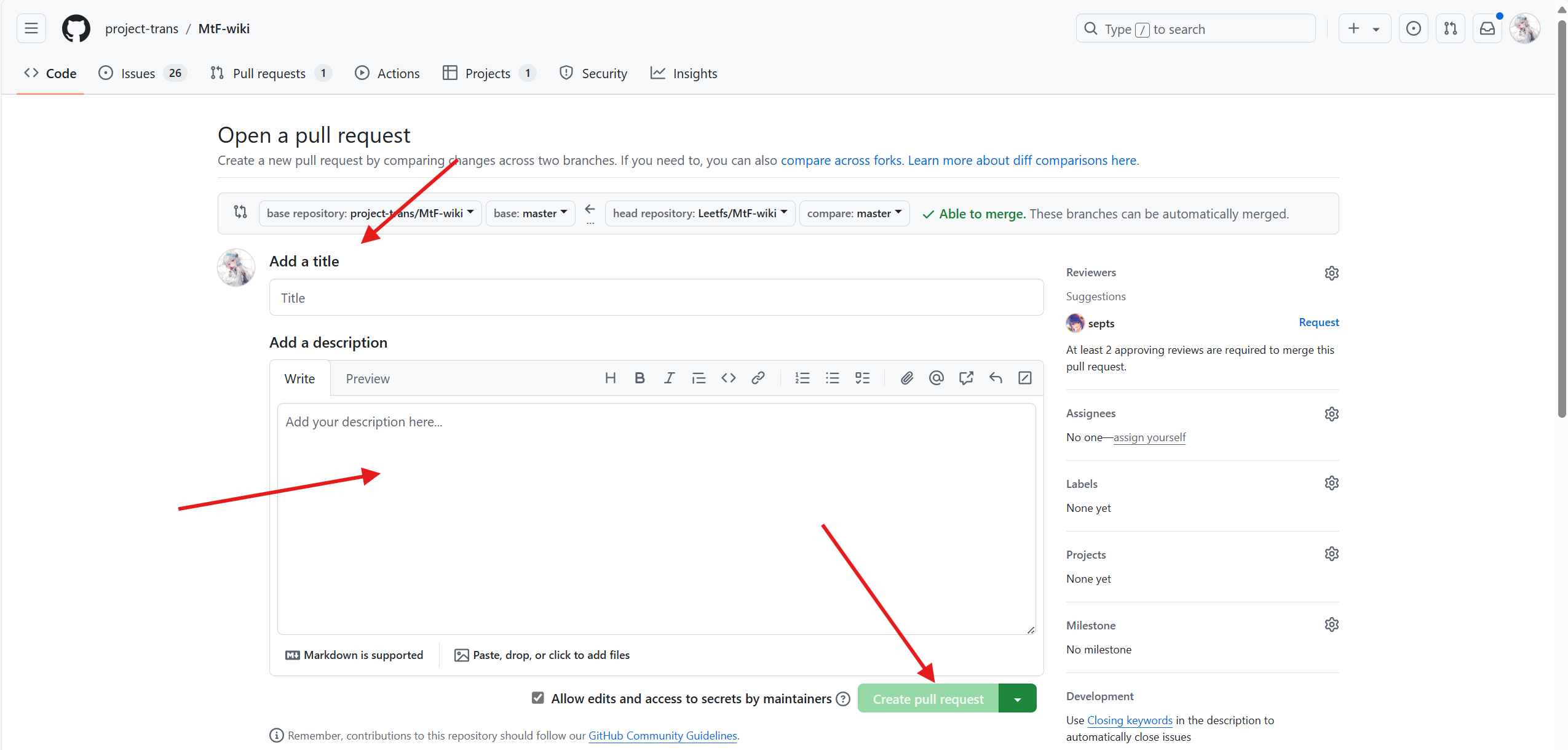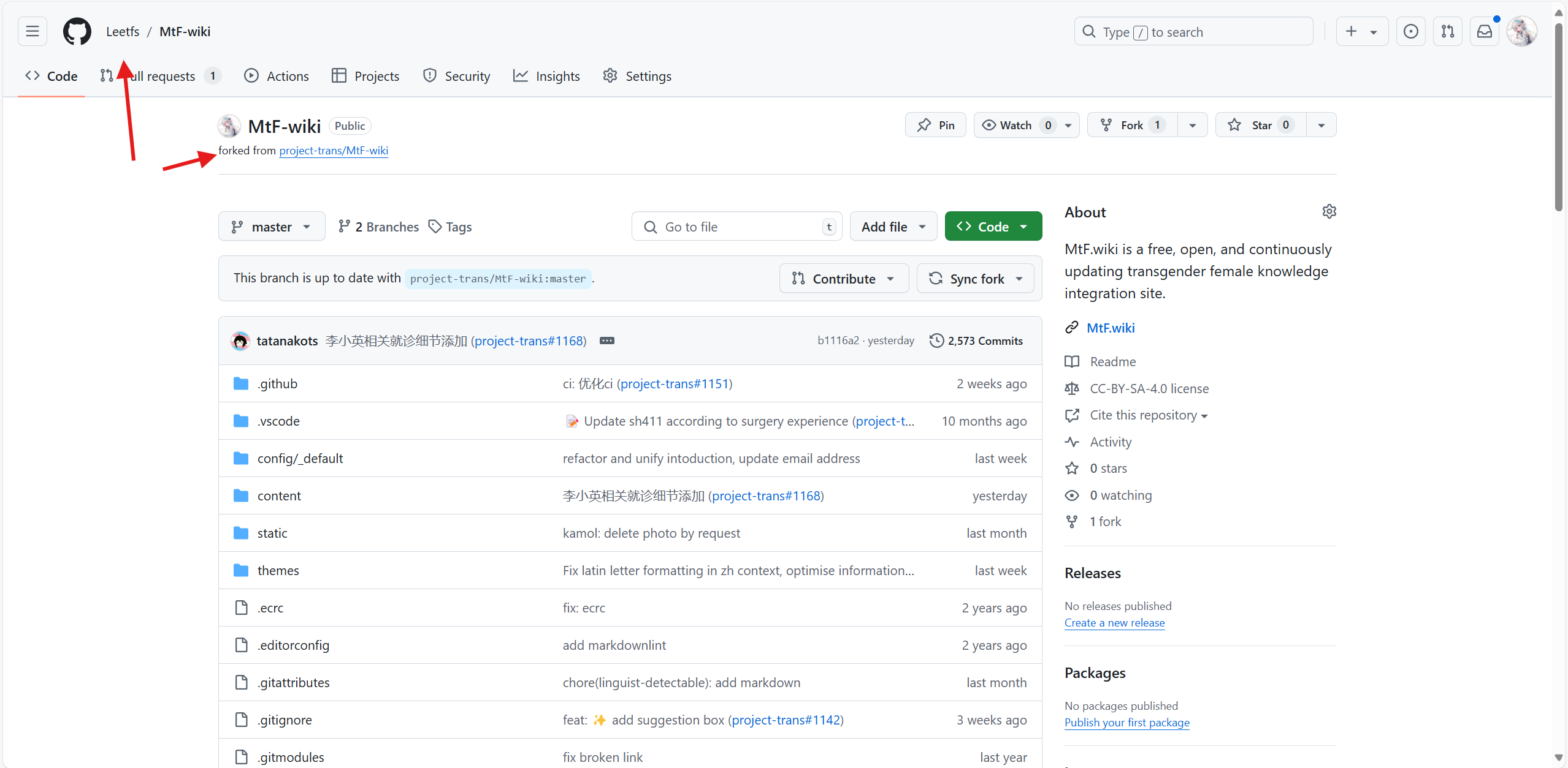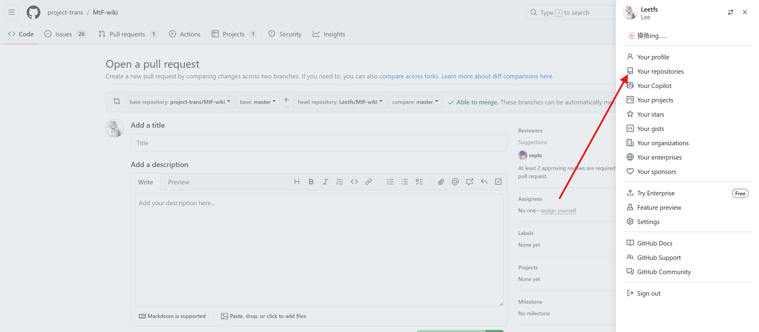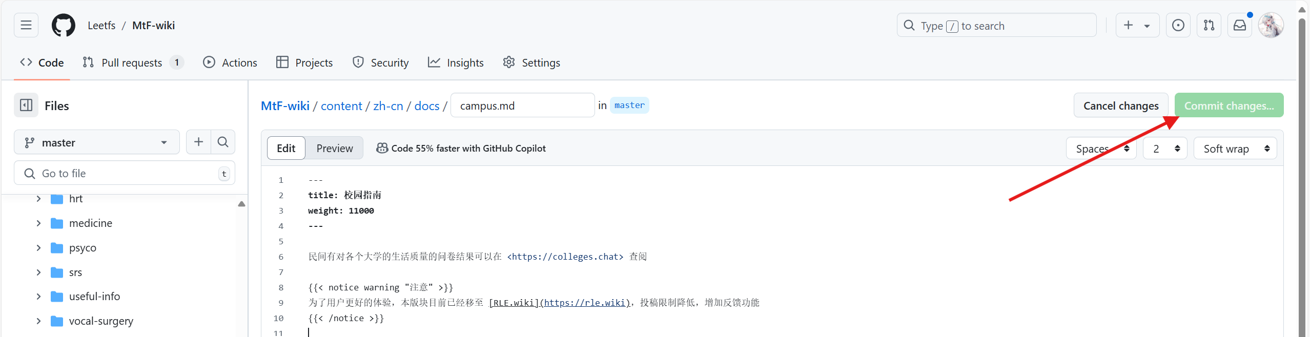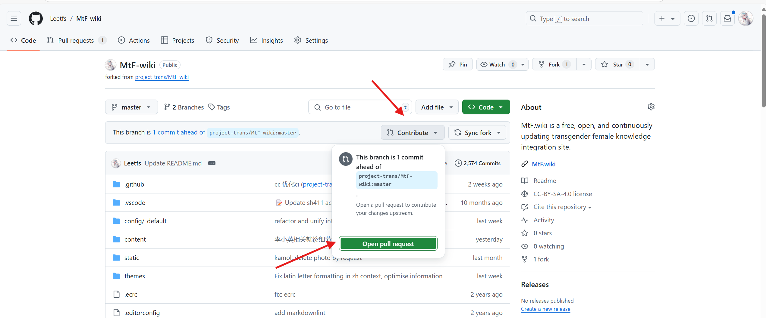 所有文件修改完毕后,返回仓库主页,并发起一个拉取请求。