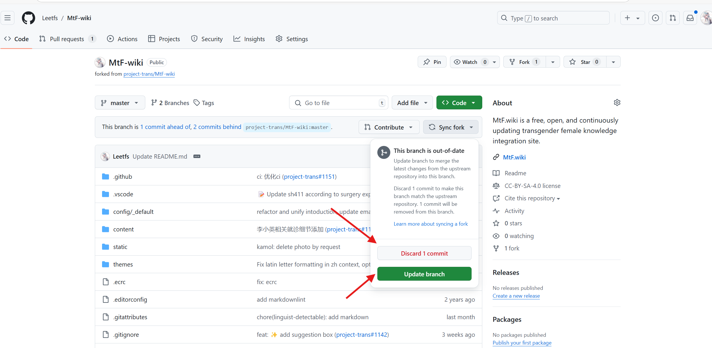 (这两个按钮都有效,第一个为更新到最新版本并舍弃你本地仓库上的提交,第二个为更新到最新版本)