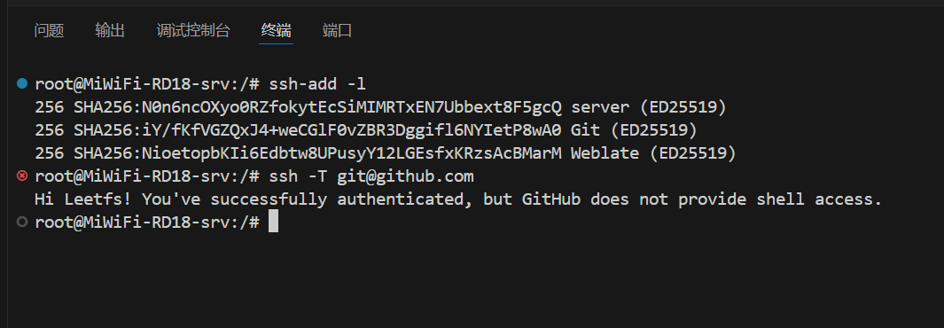 首先应确保本地 ssh 已正常运行,可使用 ssh-add -l 指令查询所有 ssh 密钥,也可运行 ssh -T 测试是否可以正确访问。